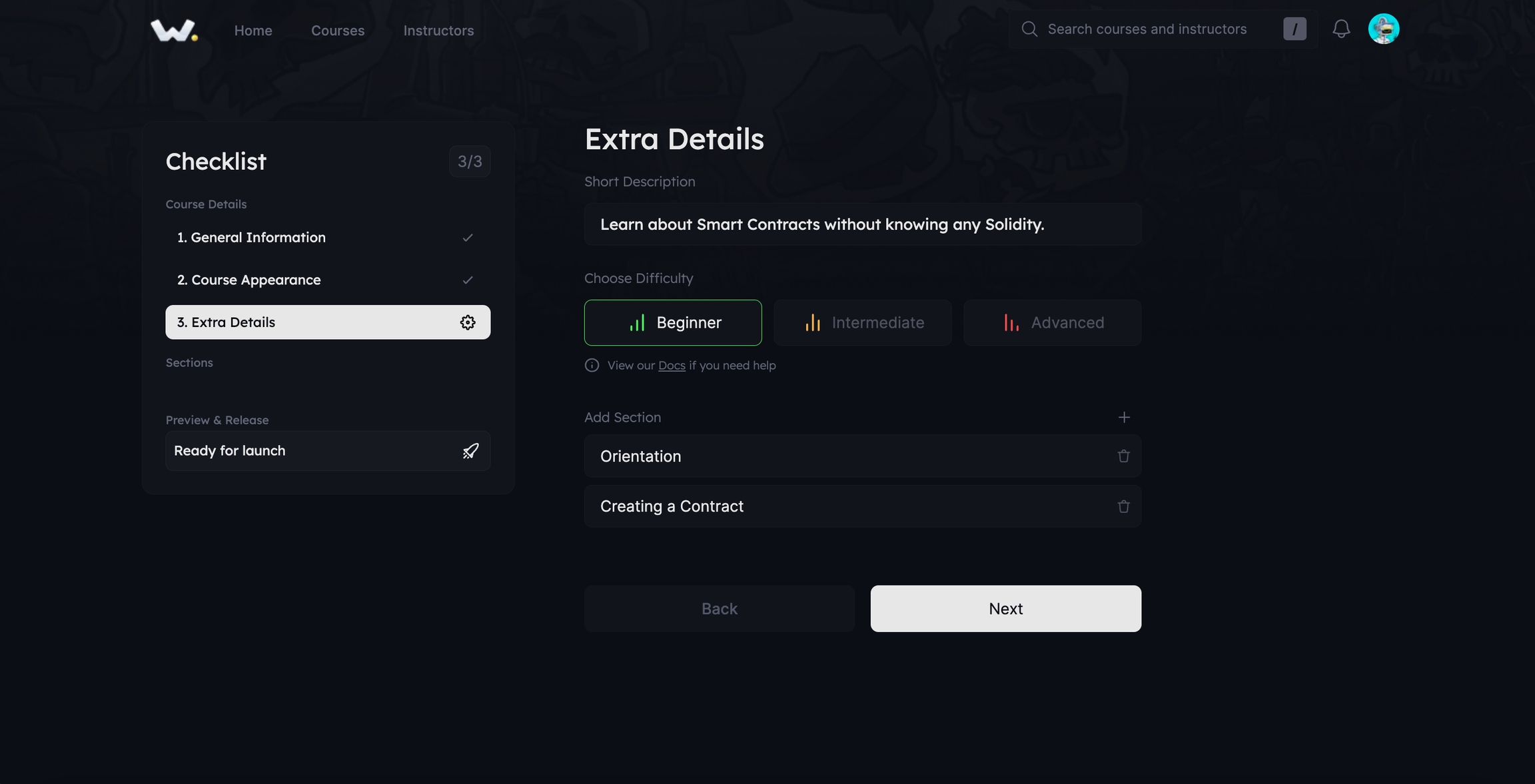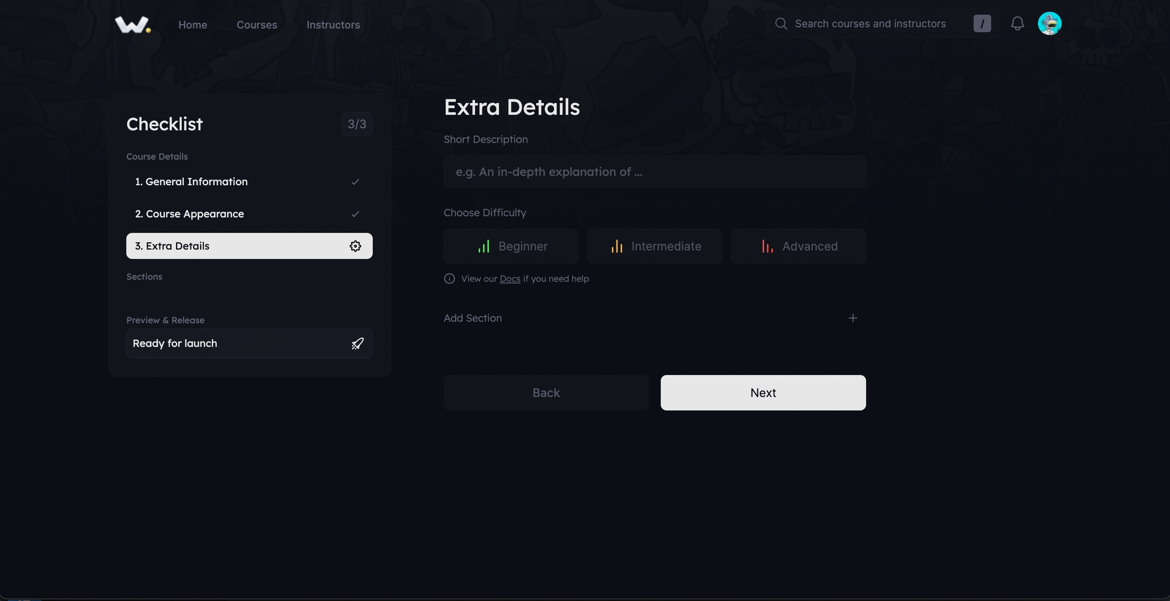 In the Extra Details tab, we're diving a bit deeper. This is where you provide those key bits of information that set the tone and expectation for your course.